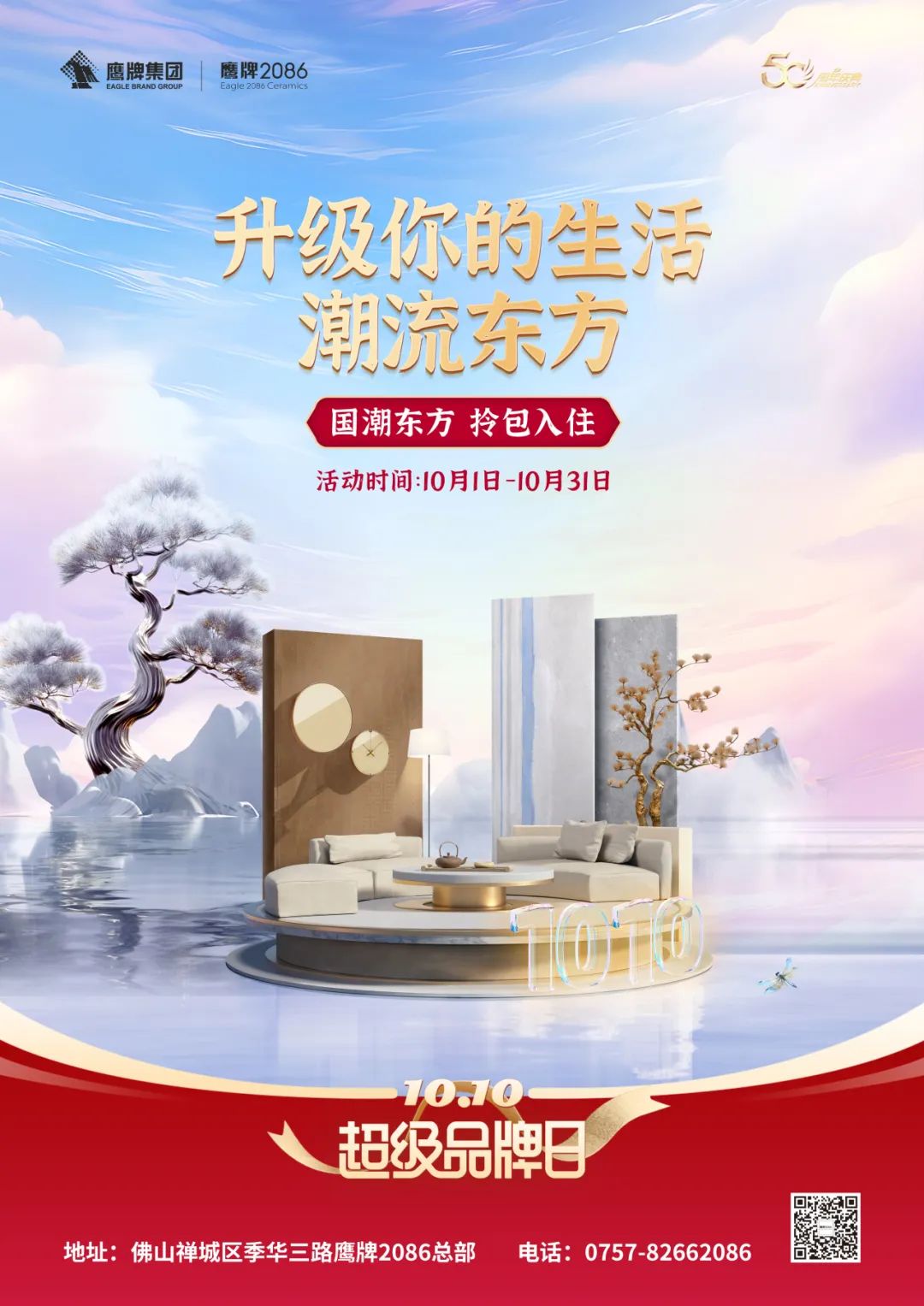 10月1日至10月31日,鹰牌2086双十品牌日以“升级你的生活,潮流东方”为主题,引古入今,邀您体验不同场景,一起探索东方潮流美学,升级生活格调,让你的家,成为心中的东方庭院。