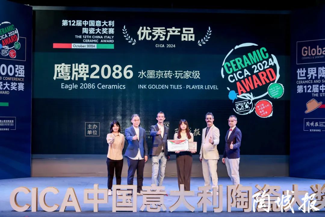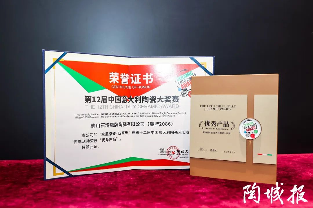 其中,水墨京砖系列作为鹰牌2086品牌IP产品,不仅是对传统文化的传承与创新,更是品牌差异化战略的重要体现。这一系列产品以其独特的东方美学和深厚的文化底蕴,与市场上其它陶瓷品牌产品形成鲜明对比,因此,本次荣获“优秀产品”奖项,不仅是对鹰牌2086品牌实力高度认可,也是对其产品研发能力的充分肯定 。