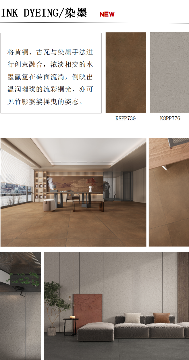 4.0系列能与各种中式风格搭配,满足多样化的空间场景需求。其砖面自然流动的纹理设计,不仅捕捉了古典之美,同时也为空间注入无限的生命力,为室内环境增添一抹东方的雅致。