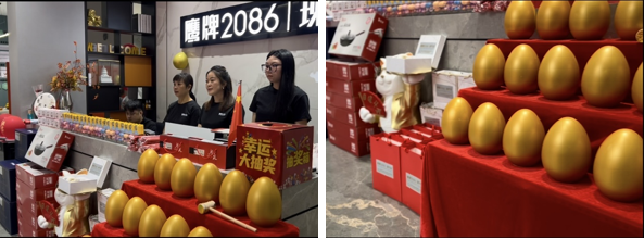 不仅如此,鹰牌仙居旗舰店在开业期间推出了一系列促销优惠活动以回馈大家,现场活动产品超值折扣,成功下定即可参与砸金蛋,100%中奖,更有机会抽取神秘装修大礼包,超多的福利政策引发客户争先下定,在开业当天开出30单,成功拿下60万定金,取得了此次活动的完美成功,这不仅证明了品牌的强大吸引力,也为鹰牌2086仙居旗舰店的未来发展开了一个好头。