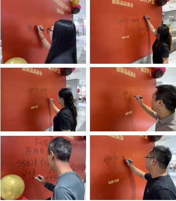 开业庆典在一片喜庆氛围中举行,宾客络绎不绝,热情洋溢。在红色背景墙上签名留念,而剪彩仪式的举行更是引发了阵阵欢呼,直接将活动气氛推向了高潮。