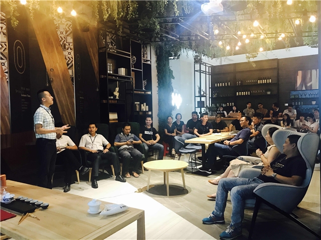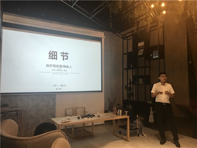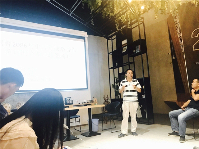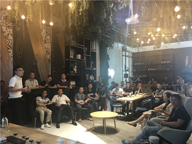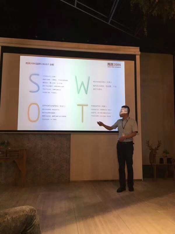 第二天,年中拓展的教练回访,针对拓展的心得以及拓展是制定的品牌策略,许下的承诺进行确认考察;市场部王经理结合所听的营销大师的课程与鹰牌2086的品牌发展,思考鹰牌2086的发展战略;业务经理雷柏杨就最近看的一本书,结合日常与客户沟通交往的经验,分享一些营销谈判或交谈是的细节问题;业务经理吴岳洲分享了作为一个潮汕人,从小耳濡目染的潮汕茶文化,并在黄炜经理的演奏下,表演了茶道,搭档默契十足。